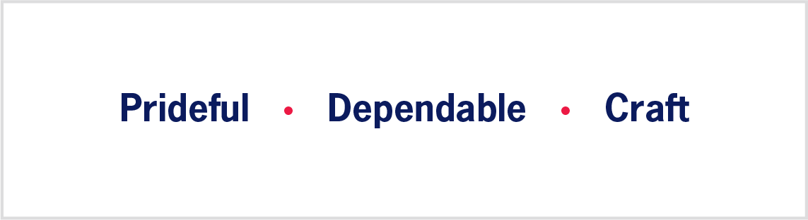 Good brands on built on consistency. The words identitified to the right are the three brand tenants that should guide all communication and messaging efforts.